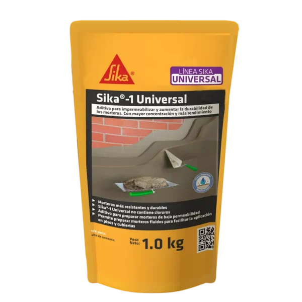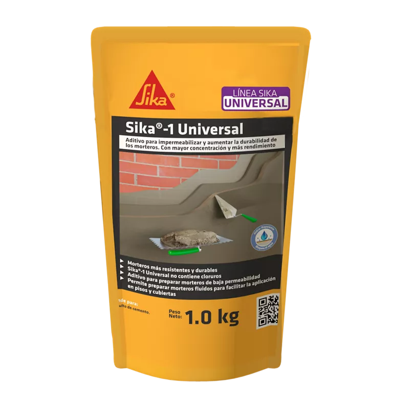 Sika®-1 Universal Es un aditivo líquido mejorado con polímeros sintéticos que actúa como impermeabilizante integral taponando poros y capilares en morteros. Aditivo para preparar morteros de baja permeabilidad, hidrorepelente, bloquea el agua.