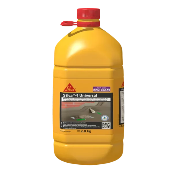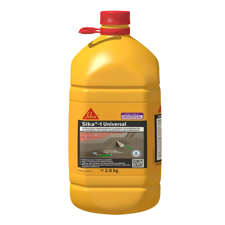 Sika®-1 Universal Es un aditivo líquido mejorado con polímeros sintéticos que actúa como impermeabilizante integral taponando poros y capilares en morteros. Aditivo para preparar morteros de baja permeabilidad, hidrorepelente, bloquea el agua.