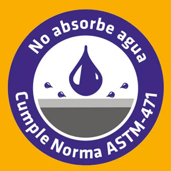 Cumple Norma ASTM D-6083. Cambio en masa en contacto con agua, menor al 20% según procedimiento de ensayo ASTM D-471