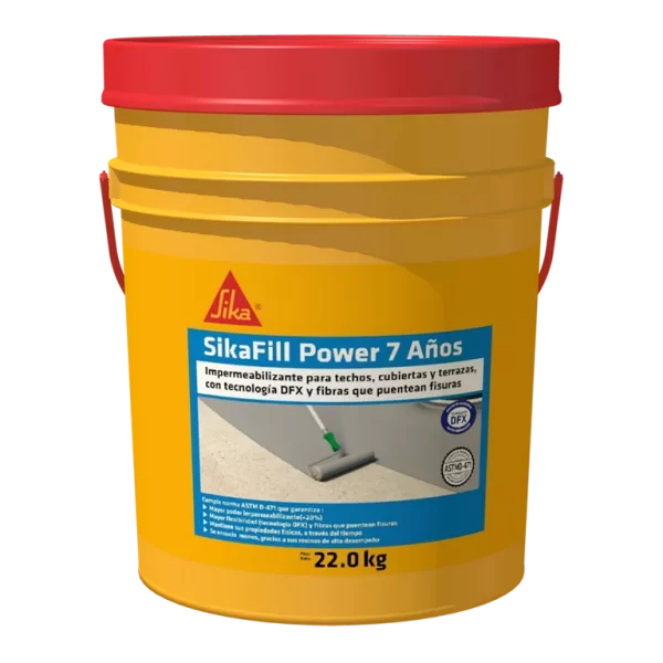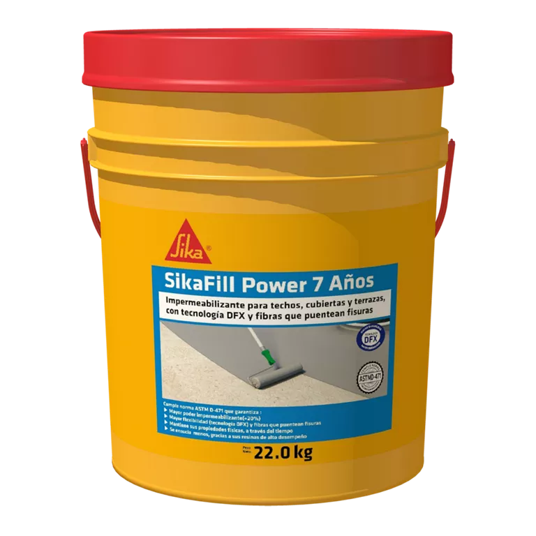 SikaFill®-7 Power CO es una membrana líquida aplicada, elástica con base en resinas acrílicas para la impermeabilización flexible de cubiertas, techos y terrazas.